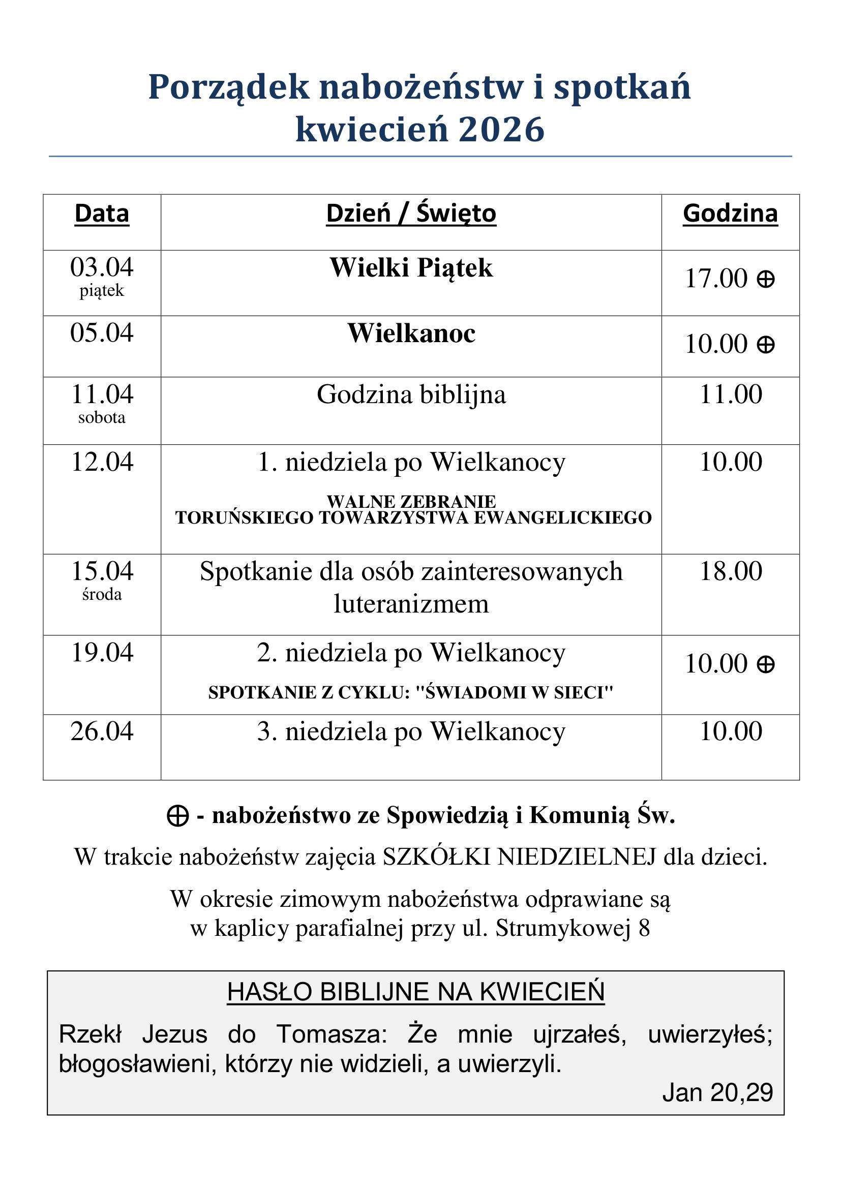 19 kwietnia 2026 r. ostatnie nabożeństwo w kaplicy przy ulicy Strumykowej 8.